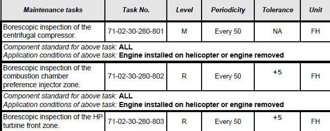 Hier wird - je nach Anzahl der Flugstunden - die empfohlenen Maßnahmen zur Wartung der Hubschrauber aufgezeigt, Interesant ist hier, dass SAB sich neben der Kontrolle vor dem ersten flug auch an die Wartungsinvervalle (z,B. 50 Std) der Luftfahrtindustrie angelehnt hat, was wiederum für die Ernsthaftigkeit und gewissenhaftigkeit ihrer Checklist spricht.