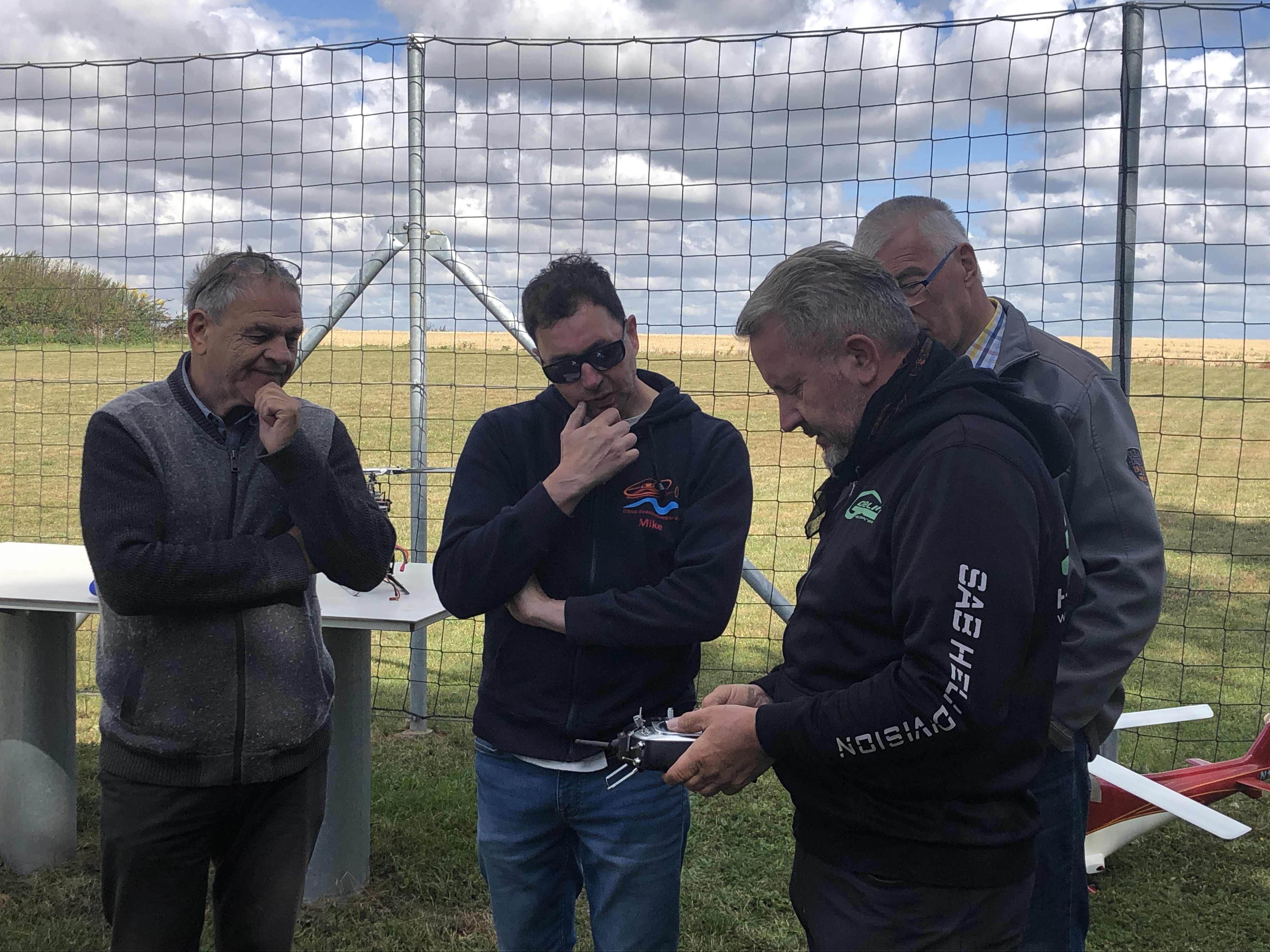 Der starke Wind.behinderte zwar etwas das Fliegen und so blieb genügend Zeit, sich beim "Heli-Doc" ein paar Anregungen zu holen z.B. zur optimalen Sendereinstellung.